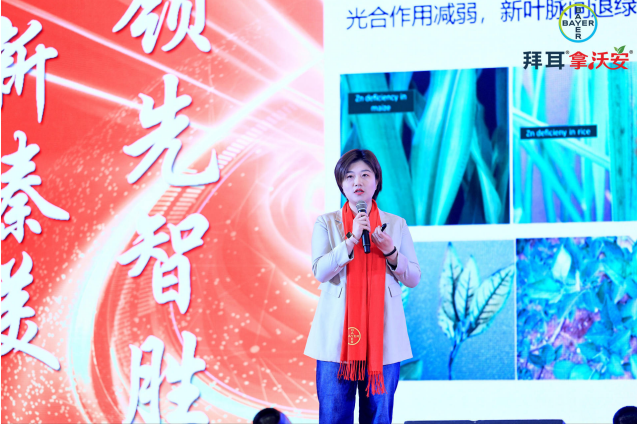 拜耳作物科学中国资产经理褚维静则重点介绍了拿沃安®组合中的安泰生®。拜耳拥有60年的杀菌剂研发史,而除了杀菌,安泰生®另一大重要特点为高含量有机锌。锌是植物体和人体必须的微量元素,也是作物与人类健康的必要条件。正如拜耳的使命“共享健康,消除饥饿”,拜耳致力于通过安泰生®等创新产品,促进土壤健康、作物健康与人类健康协同并进。