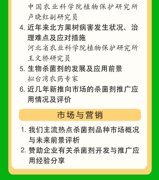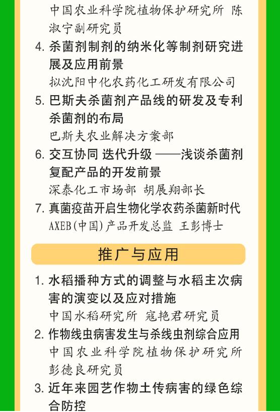 科迪华除了新近推出的小麦病害防控新产品穗艳®外,该公司作为第五届杀菌剂发展与推广应用的协办单位,将会有更多的优秀杀菌剂品种在会上进行展示介绍,将会给与会代表分享杀菌剂与病害治理解决方案和新突破。
