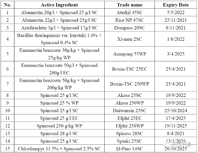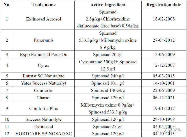 常见产品为:Spinosad 10% SCSpinosad 25g/L SC
