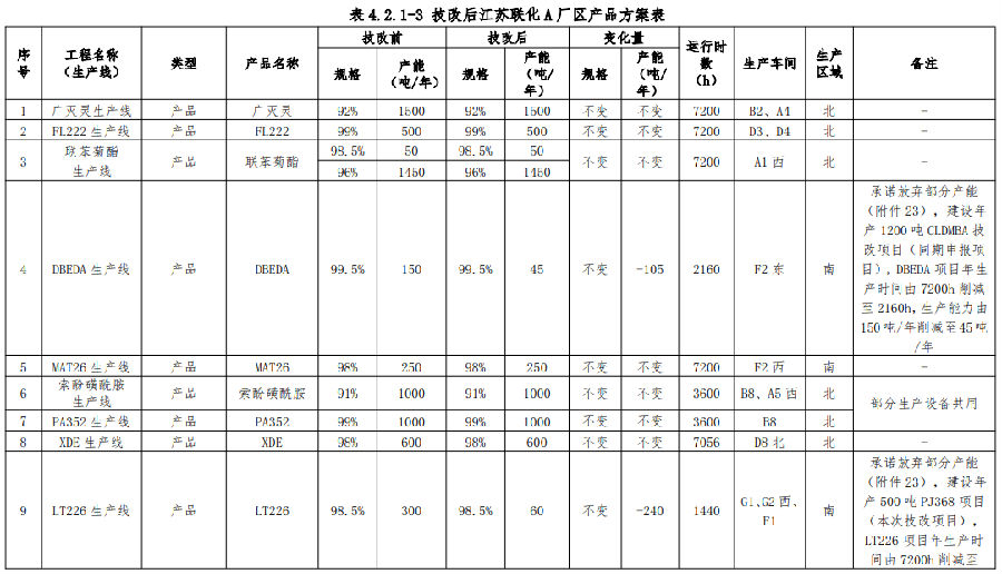 利用厂区内现有生产设施,江苏联化拟在生产车间G1和G2西利用现有年产300吨LT226项目的部分生产设备进行改建,建设年产500吨4-甲酰基哌嗪砜(PJ368)生产线建设项目。