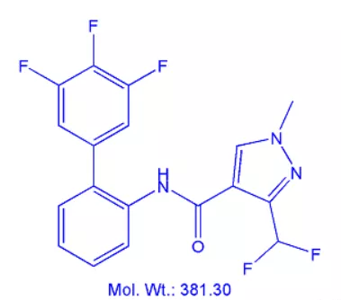 IUPAC名称3-(二氟甲基)-1-甲基-N-(3',4',5'-三氟联苯-2-基)吡唑-4-甲酰胺,CAS名称3-(二氟甲基)-1-甲基-N-(3',4',5'-三氟[1,1'-联苯]-2-基)-1H-吡唑-4-甲酰胺。CAS登录号907204-31-3,开发代号BAS 700 F、5094351,分子式C18H12F5N3O,相对分子质量381.3。