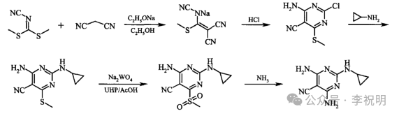 化学名称:4,6-二氨基-2-(环丙氨基)嘧啶-5-腈