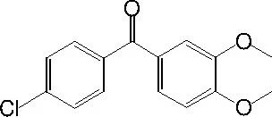 4-氯-3′,4′-二甲氧基二苯甲酮英文为(4-Chloro-3′,4′-Dimethoxy Benzop Henone), CAS号为116412-83-0,分子式为C15H13ClO3,分子量为276.71,熔点为111~112℃,沸点为414.5℃,密度为1330 kg/m3,在水中溶解度为0.0014 g/L,常温下为深褐色固体,与皮肤接触能造成刺激,对水生生物毒性极大,属于类别Ⅰ,一般作为杀菌剂中间体使用。 其化学结构式如下: