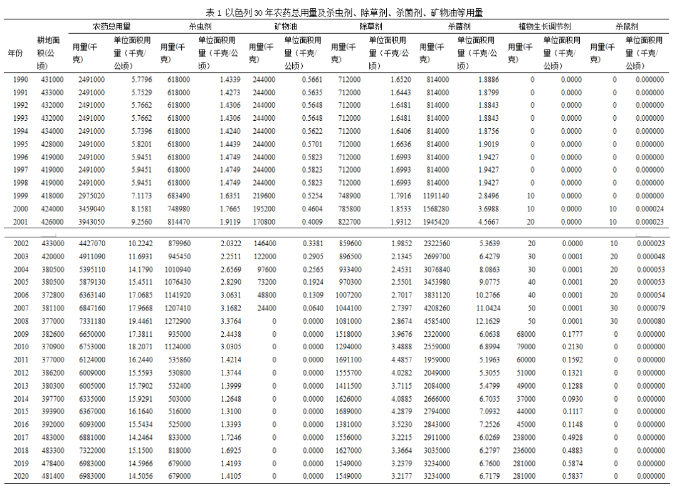 农信传媒报道:根据联合国粮食与农业组织(FAO)官网上(https://www.fao.org/faostat/en/#data/RL)以色列的农药使用情况和作物种植面积,可计算出不同种类农药的单位面积用药情况,见表1。