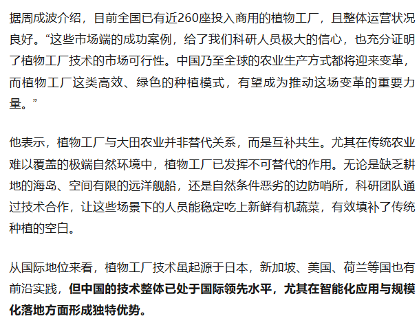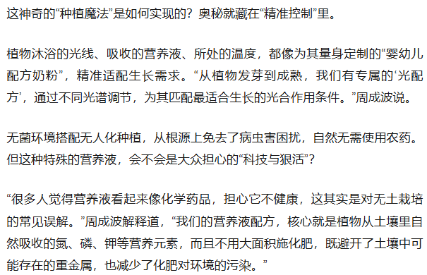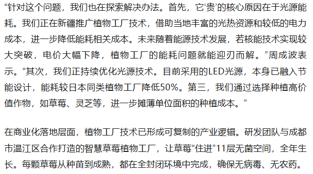 未来随着技术和产能的提升,植物工厂生产的农产品完全可以做到物美价廉。周成波希望,这一天在未来10年到20年便会来到。
