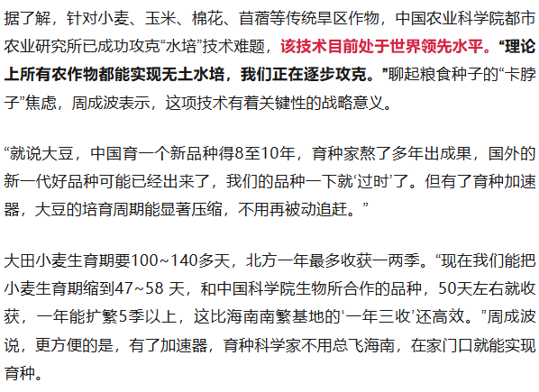而育种加速器完全摆脱了自然环境的束缚,它能依据人类需求精准调控温、光、水、营养,实现全年无间断的全周期生产。若将这类“小房间里的育种加速器”扩展到更大规模,便是“植物工厂”,相当于把“可控育种”升级成“可控量产”。