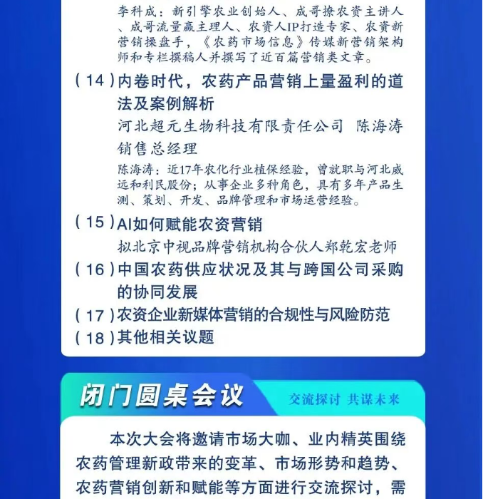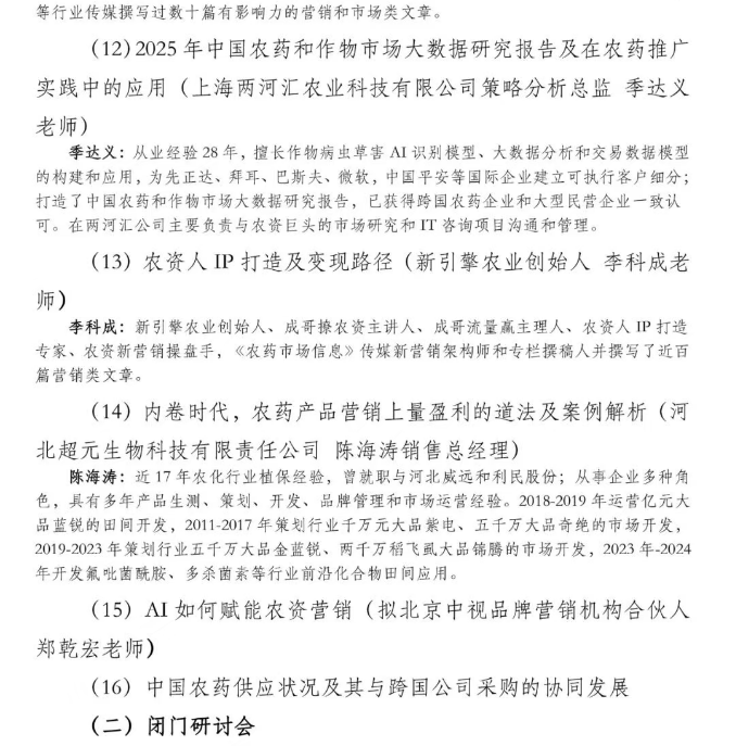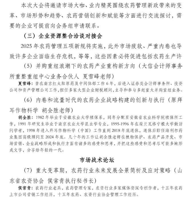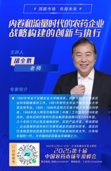 你想了解这些以上这些问题的发生机制及应对方案吗,让我们在变局中寻找确定性,来第十届农药市场年度峰会,胡全胜老师将在12月12日在南通为大家讲解“内卷与流量时代下农药企业发展的战略创新与执行”。