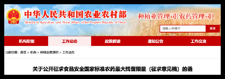 9月4日,农业农村部种植业管理司发布关于公开征求食品安全国家标准农药最大残留限量(征求意见稿)的函,种植业管理司根据相关规定,拟定了《食品中2,4—滴二甲胺盐等97种农药最大残留限量(征求意见稿)》标准文本,现公开征求意见。