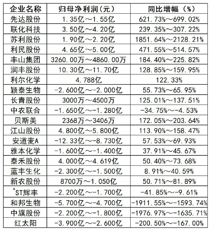 农药上市企业2025年业绩预告