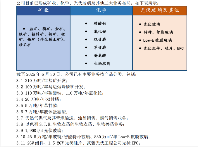 面对主业承压,和邦生物近年来积极拓展新业务板块,目前已形成矿业、化学、光伏玻璃及其他三大业务布局。