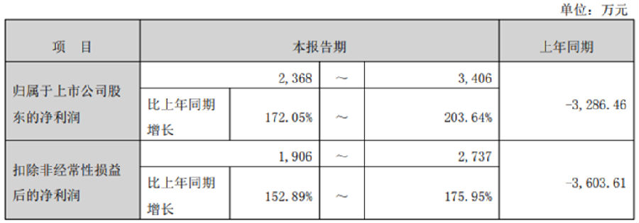 绍兴贝斯美化工股份有限公司(简称:贝斯美)1月16日披露2025年度业绩预告,预计2025年归母净利润2368万元至3406万元,上年同期亏损3286.46万元;扣非净利润预计1906万元至2737万元,上年同期亏损3603.61万元。