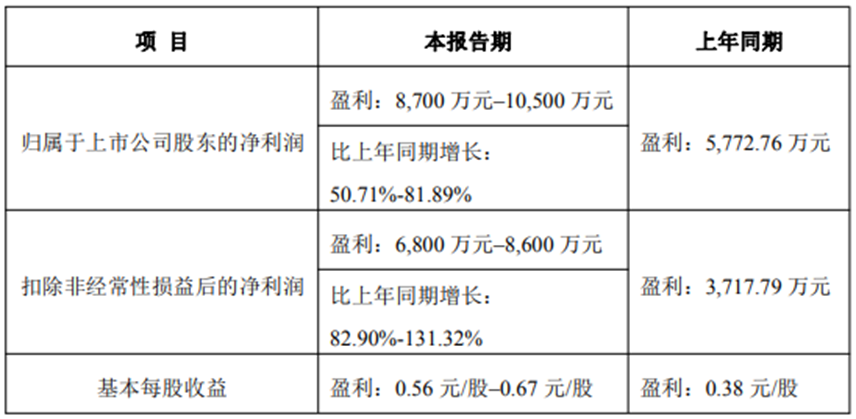 业绩预告预计,2025年归母净利润8700万元至1.05亿元,同比增长50.71%-81.89%;扣非净利润预计6800万元至8600万元,同比增长82.9%-131.32%;基本每股收益0.56元/股-0.67元/股。