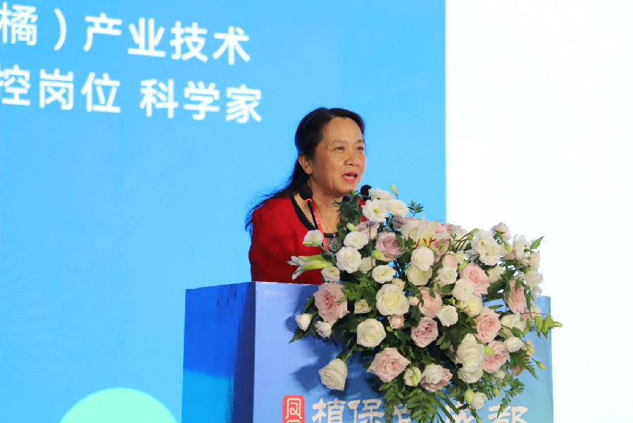 华南农业大学教授、国家现代农业(柑橘)产业技术体系细菌性病害防控岗位科学家邓晓铃作“柑橘黄龙病的预警与防控”报告