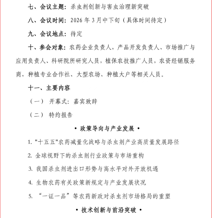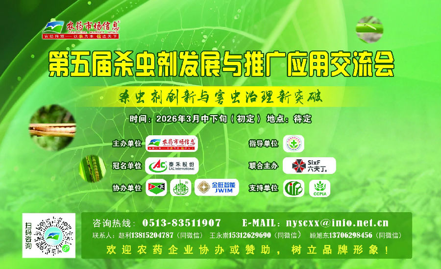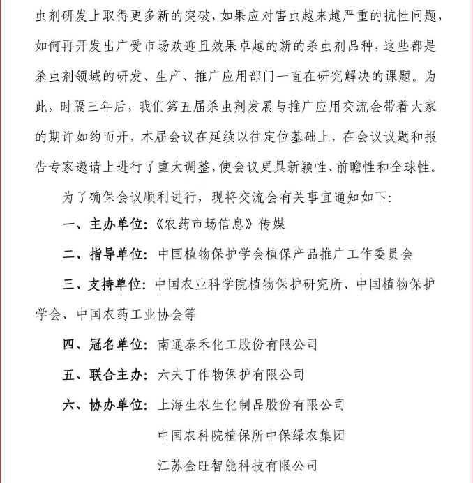泰禾、六夫丁、生农生化、中保绿农、金旺智能等鼎力相助,第五届杀虫剂发展与推广应用交流会3月杭州再启