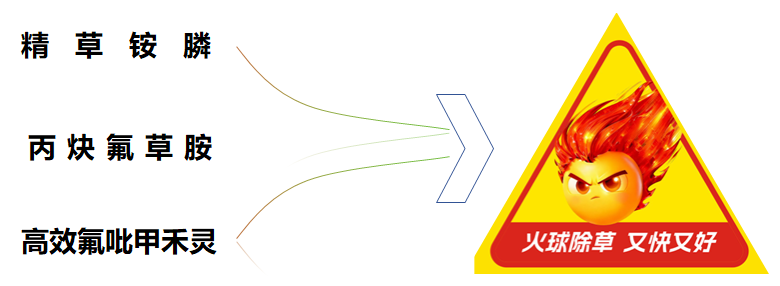 首先,是作用机制的立体协同。火球®融合了三大作用机理:精草铵膦作为谷氨酰胺合成酶(GS)抑制剂,对它内吸传导在3-5天快速见效;丙炔氟草胺作为原卟啉原氧化酶(PPO)抑制剂,兼具触杀与封闭活性,持效期长达50天;高效氟吡甲禾灵作为乙酰辅酶A羧化酶(ACCase)抑制剂,专杀禾本科顽固杂草。三种机制各司其职、优势互补,构建起“触杀、内吸和封闭”的立体除草体系。这种多靶点协同的设计,不仅将杀草谱扩展至95%以上的抗性杂草,更会有效延缓单一靶点抗性的产生,在抗性管理层面具有战略意义。