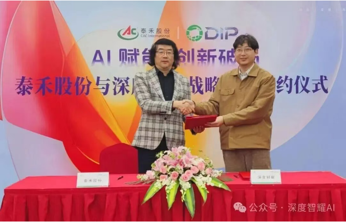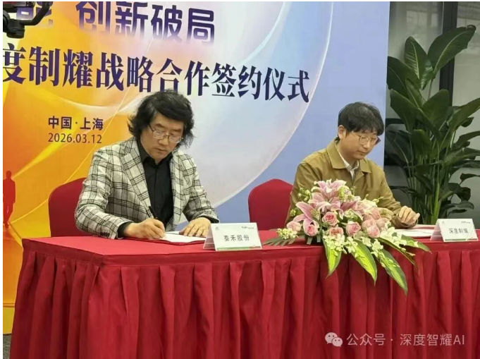 2026年3月12日,深度智耀(北京)科技股份有限公司与南通泰禾化工股份有限公司在上海举行战略合作签约仪式。深度智耀董事局主席李沣锦、泰禾股份总经理田晓宏出席并签约。