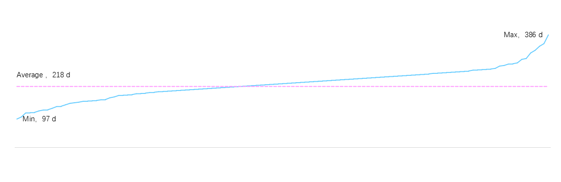 在登记资料受理时长上,平均受理时长约为218天。最快仅需97天,最慢长达386天,效率差距拉开近4倍。