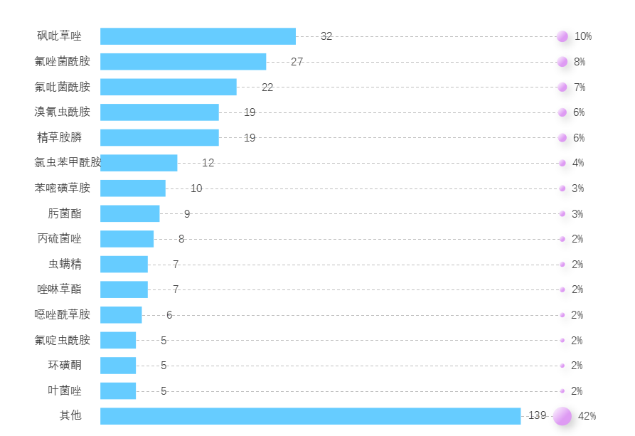 砜吡草唑 以32个拟登记数位列第一,成为除草剂领域的“当红炸子鸡”。SDHI类杀菌剂受热捧,氟唑菌酰胺、氟吡菌酰胺 跻身前三,高端杀菌剂国产化进程加速。