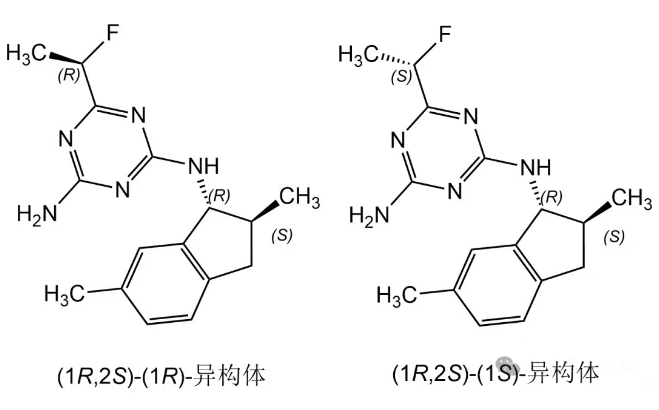 茚嗪氟草胺的分子式C16H20FN5,相对分子质量301.362,化学名称为2-N-[(1R,2S)-2,6-二甲基-2,3-二氢-1H-茚-1-基]-6-[(1Ξ)-1-氟乙基]-1,3,5-三嗪-2,4-二胺。