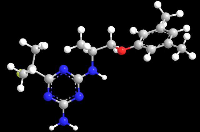 该产品分子式C9H17N5S,相对分子质量227.330,化学名称为4-N-乙基-6-甲硫基-2-N-丙-2-基-1,3,5-三嗪-2,4-二胺。莠灭净为选择性内吸传导型除草剂,药剂可被植物的根与茎叶吸收,杀草作用迅速。作用机理是抑制光合作用光系统Ⅱ—丝氨酸264结合剂(photosynthesis PS Ⅱ - Serine 264 binders),抗药性列为国际除草剂抗性行动委员会/美国杂草科学协会 HRAC/WSSA 5组。主要用于防除夏玉米田、甘蔗田、菠萝田一年生杂草。