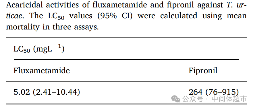 对二斑叶螨,氟噁唑酰胺的杀螨活性是氟虫腈的50倍以上。