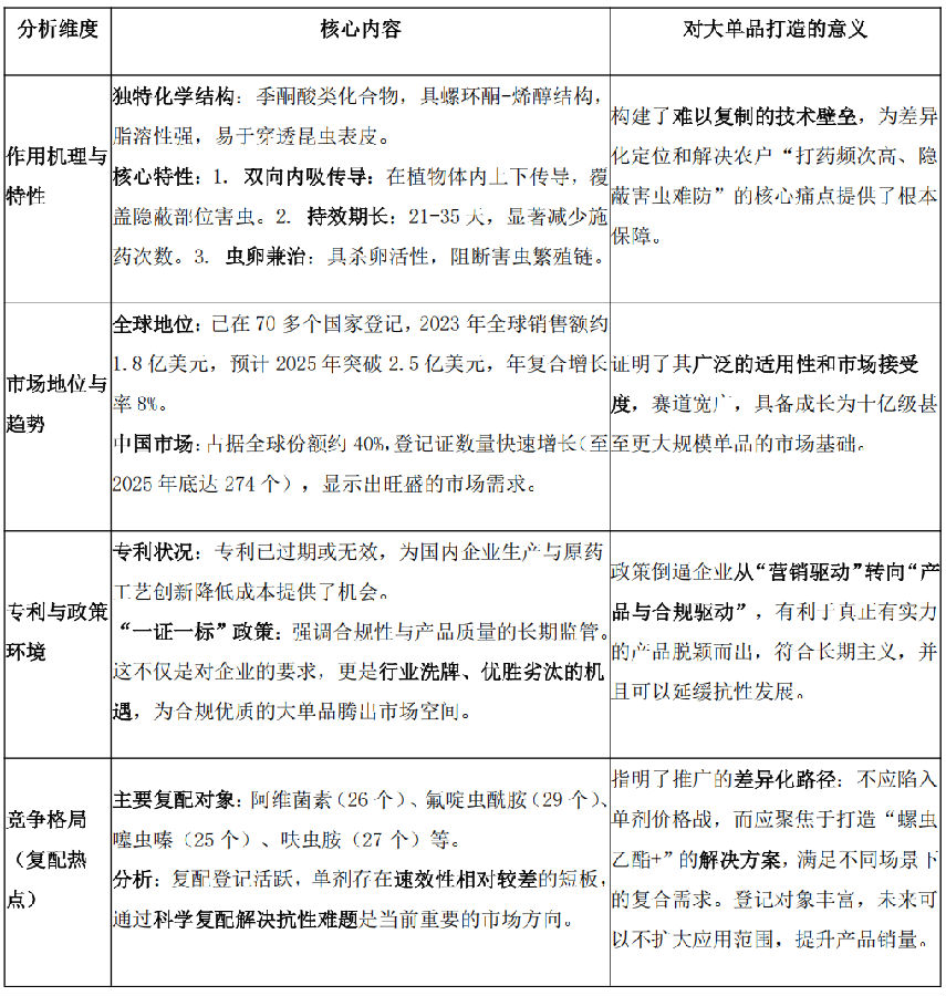 因此,在制定推广策略前,必须深刻理解产品本身。下面对螺虫乙酯成为大单品的内在禀赋与外部环境进行深度分析。